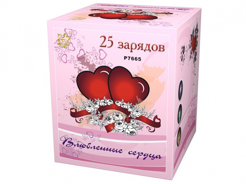 25 зарядов (1,25") Красные и голубые хризантемы, золотая пальма с треском, бураки